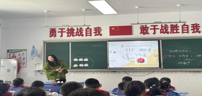 本次示范课由吕子旭老师执教新苏教版三年级下册《认识几分之一》。 课堂上,吕子旭老师根据学生已有的知识和认知发展心理,先引导学生回顾了一个物体的1/2,接着带领学生认识了一个整体的1/2,再启发学生利用学习一个整体的1/2方法主动认识其他的几分之一,带领学生经历从一个物体的几分之一到认识一个整体的几分之一的过程,这种循序渐进的安排,使学生更深刻理解其中一份的含义,拓展了学生的思维,有利于学生逐步加深理解分数的本质。
