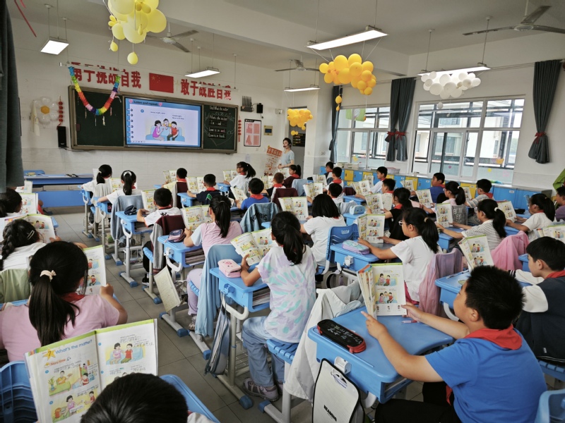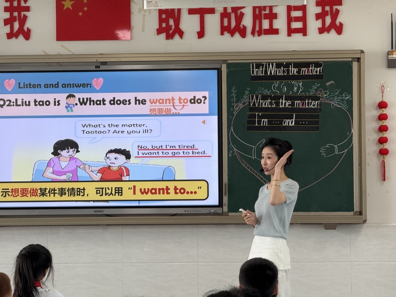 拓展环节中,学生以小组为单位创编新对话,模拟刘涛关心疲惫母亲的场景,灵活运用目标句型,并在展示中融入情感教育——关爱家人、朋友及需要帮助的人。课堂最后,教师通过儿歌总结重点句型,并布置分层作业,兼顾巩固与预习。 课后研讨中,听课教师高度评价本节课的设计亮点:以学生为中心的活动贯穿始终,游戏与任务驱动有效提升参与度;情感目标与语言目标深度融合,体现学科育人价值。同时,教师们就如何优化小组合作效率、拓展生活化情境等展开讨论,为后续教学提供新思路。