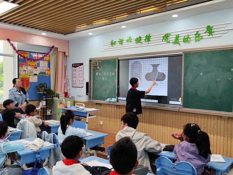 课堂伊始,樊老师爱迪生测量灯泡容积的数学小故事巧妙渗透“转化”这一数学思想。探究新知环节,教师鼓励学生自主尝试比较不规则图形面积的方法,让学生分享思路、总结经验,凸显转化的思想。小组讨论中,学生们积极交流,教师适时点拨,引导学生从具体操作中提炼数学思想——将复杂问题转化成简单问题、将未知转化为已知。