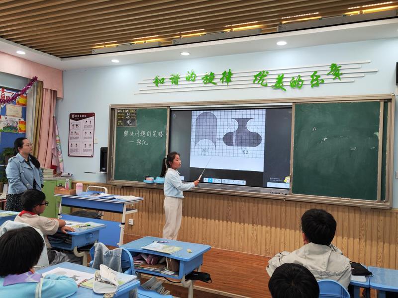 在随后的教研活动中,樊老师首先介绍了自己本节课的设计思路,她希望通过设计更精准的问题激发学生探究的积极性,让学生深刻理解“转化”思想,并将其运用到数学学习中。接着,樊老师谈到了自己在磨课过程中遇到的问题,她发现部分学生在数学语言表达上存在欠缺,这在一定程度上影响了他们对“转化”思想的理解和表达。
