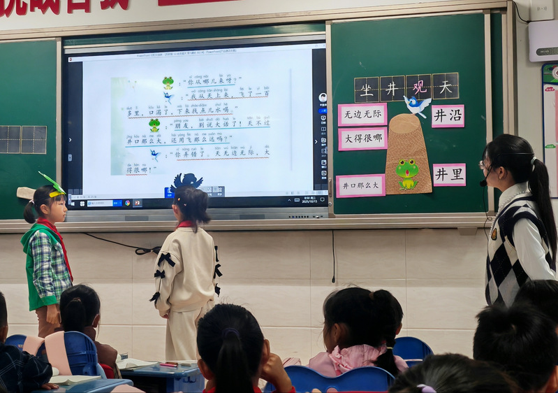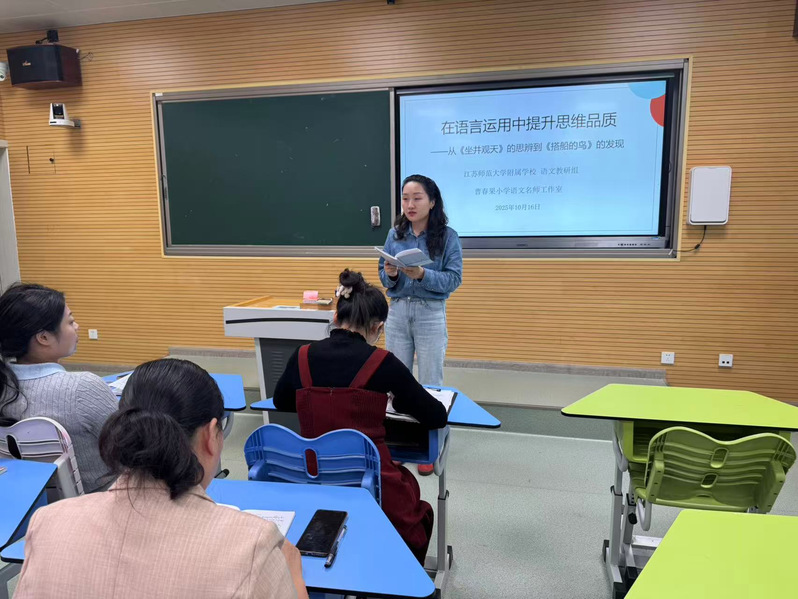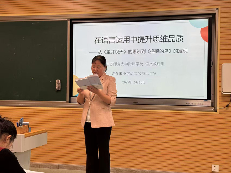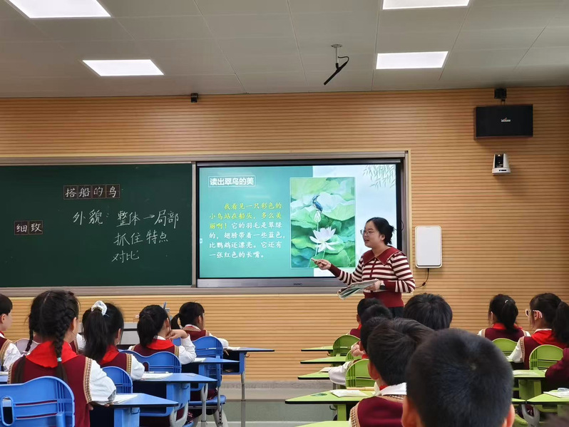 为助力青年教师站稳课堂、提升语文教学品质,更好地在区公开课中展示课堂风采,我校语文教研组以曹春果名师工作室、二三年级备课组为依托,于10月16日举行本学年度第二次语文研讨课活动。乔秋菊、徐梦晨两位老师分别执教《坐井观天》《搭船的鸟》,全校语文教师积极参与本次教研。