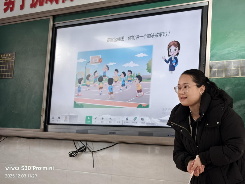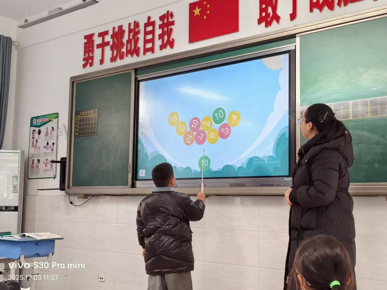 樊敏慧老师的苏教版一年级上册加减法实际问题课堂,以趣味十足的“球球大作战”游戏点燃学习热情。“我的数字是3,你的朋友在哪里?”樊老师率先发问,孩子们兴奋地选取屏幕上的数字球球回应:“在这里!我是5,3+5=8!”在欢快的互动比拼中,孩子们直观感受“合起来”的数学含义,为新知学习筑牢基础。
