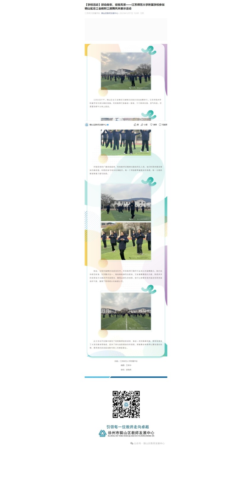 跃动身影,绽放风采——江苏师范大学附属学校参加铜山区总工会教职工操舞风采展示活动