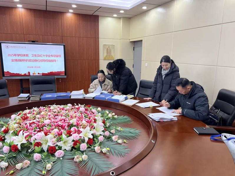 调研过程中,督导组查阅了学校2025年度体育卫生工作档案材料,深入了解了学校体卫工作开展的过程。在调研反馈会上,督导组对学校体卫工作的成效给予了充分肯定,同时也就档案的管理规范、教案的撰写规范等方面提出了意见建议。李辉对督导组一行表示感谢,同时学校将会进一步梳理督导组一行提出的意见和建议,对标找差,坚持立行立改,进一步改进和规范学校的体卫工作。