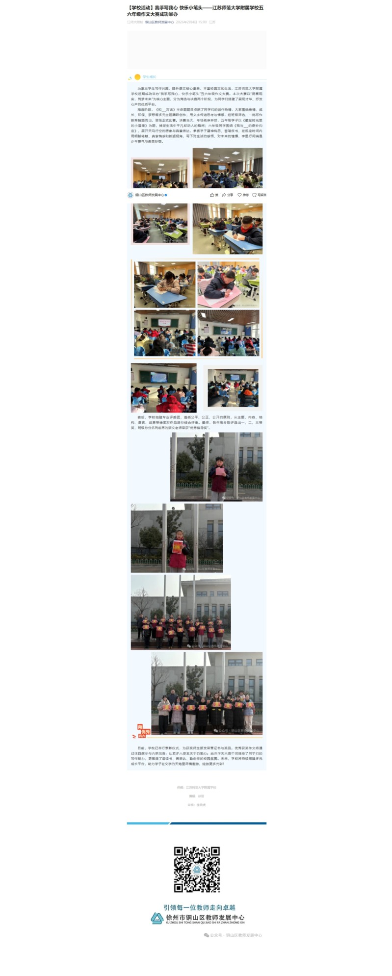 铜山区教师发展中心2月4日报道我校专题活动:我手写我心 快乐小笔头——江苏师范大学附属学校五六年级作文大赛成功举办