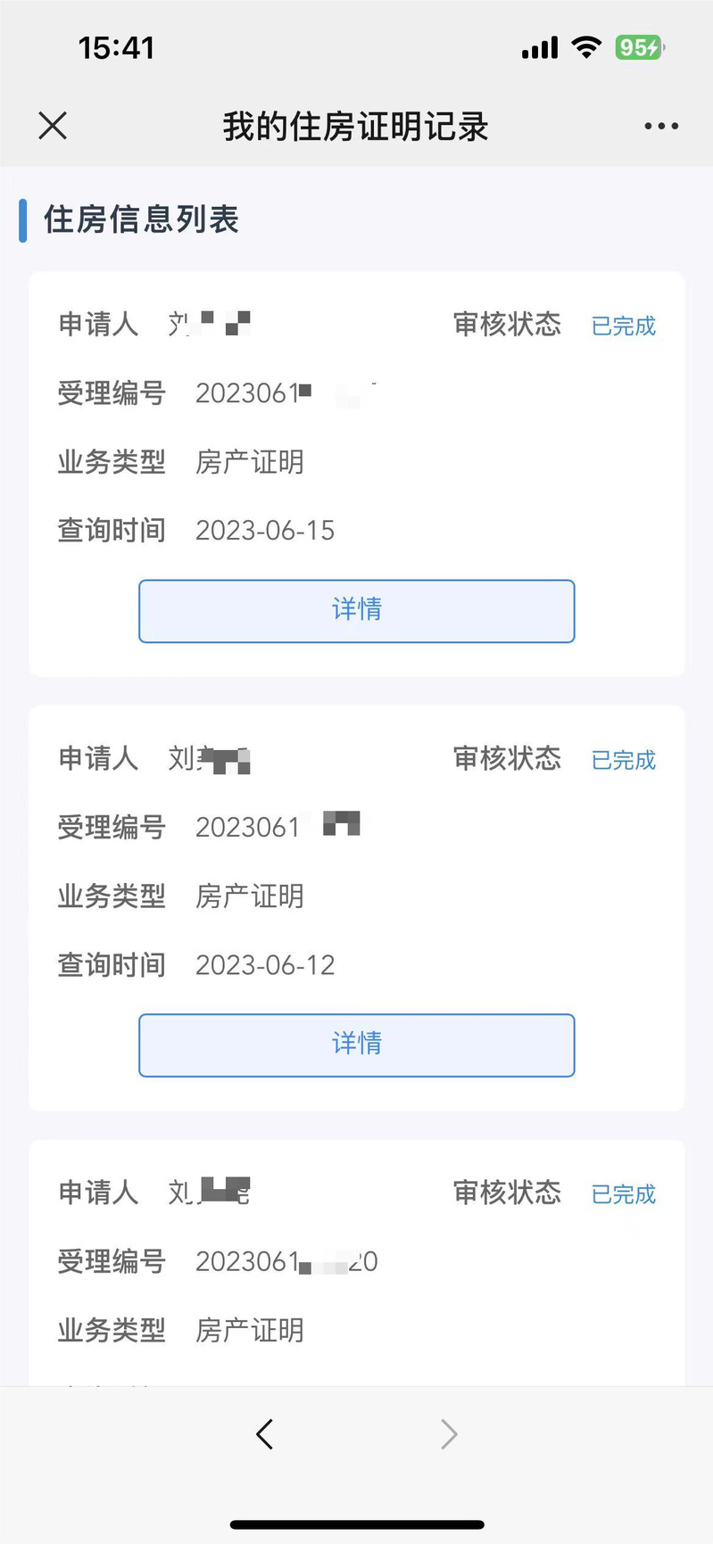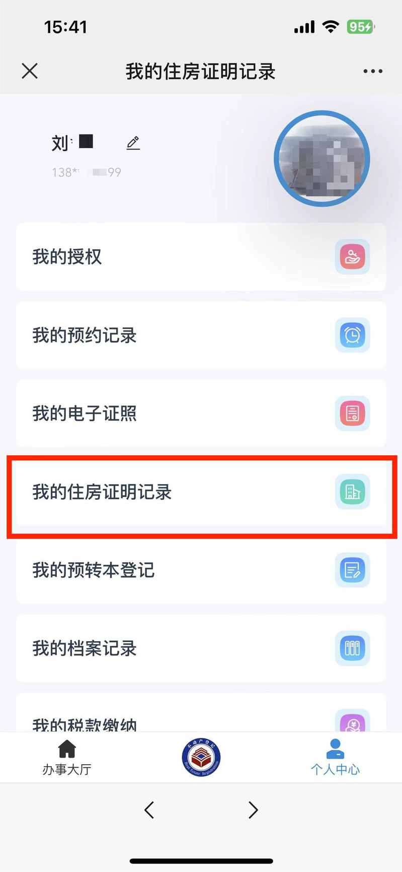 6.申请人可在个人中心查看已申请的住房证明记录。