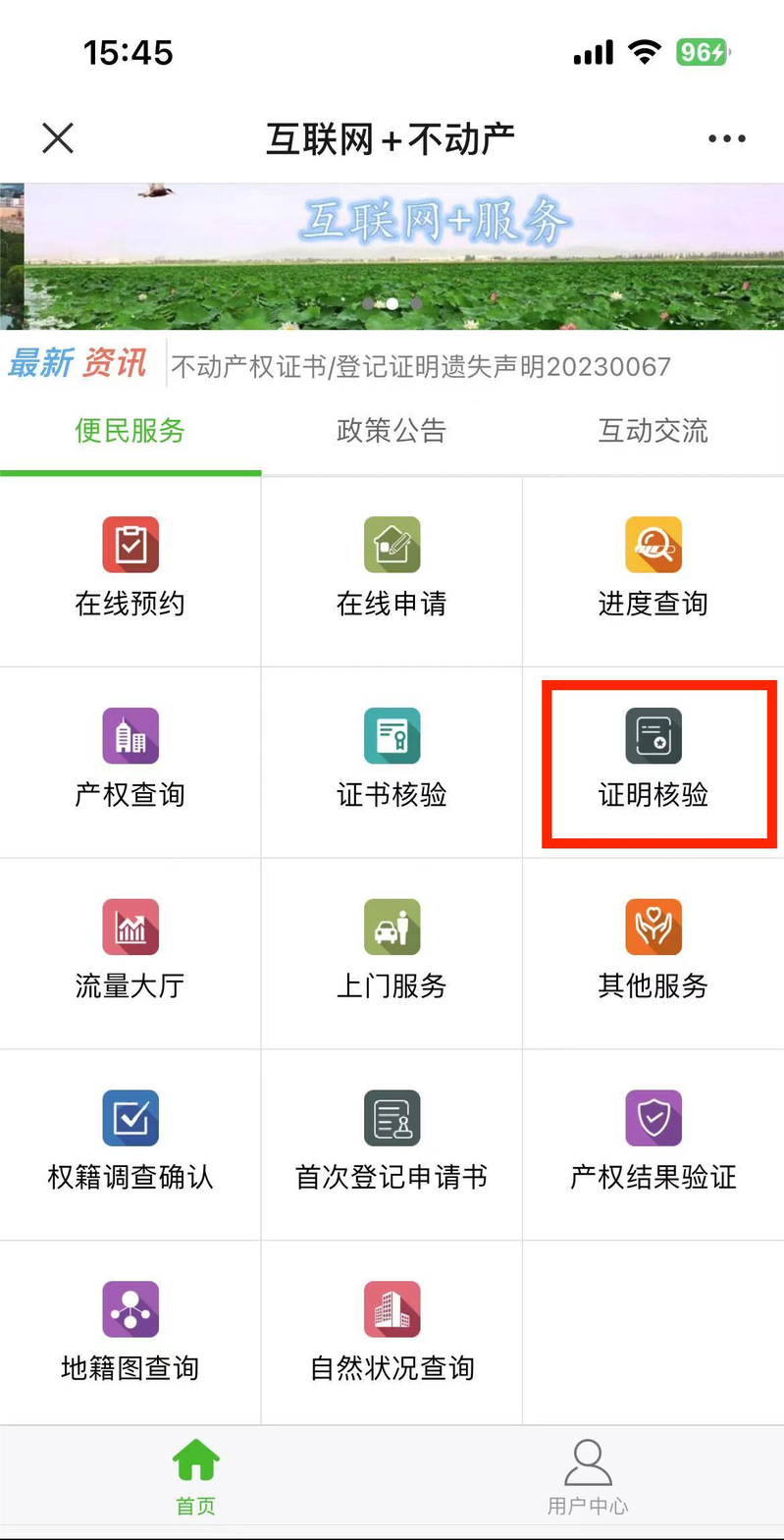 2.进入官微首页点击下方“掌上中心”,点击“证明核验: