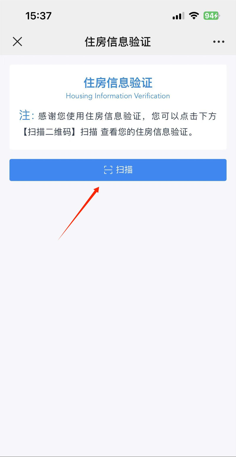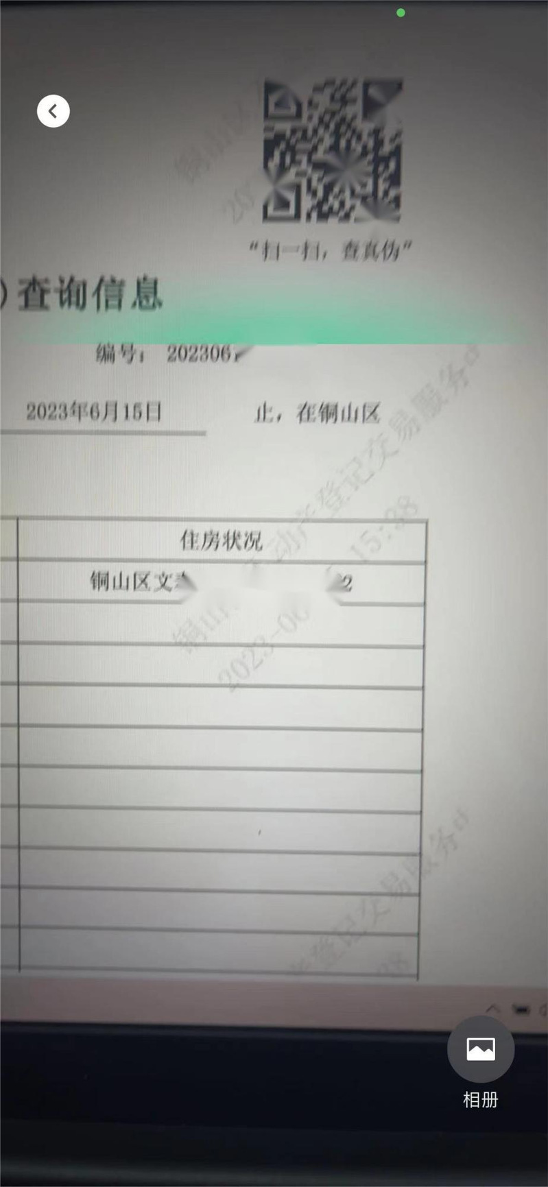 4.点击扫描二维码,扫描已开具的住房证明右上角二维码,查看需要验证的住房信息。