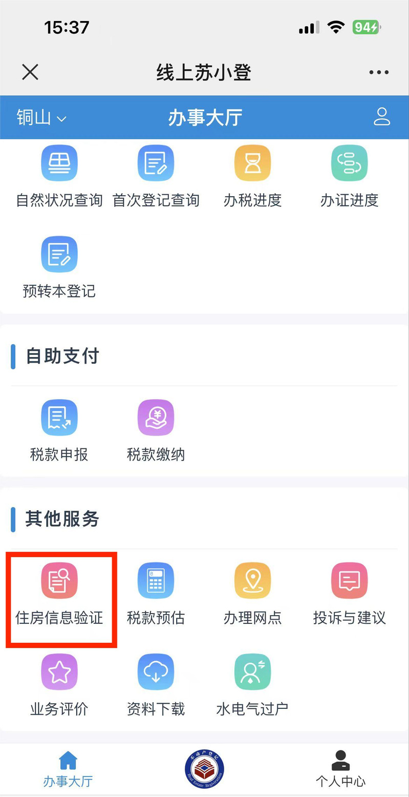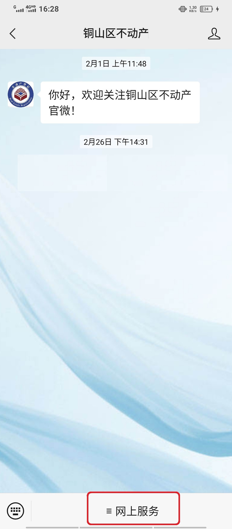 1.关注并进入微信公众号:铜山区不动产(tsqbdc)。进入网上服务大厅查询。(查询流程后附)