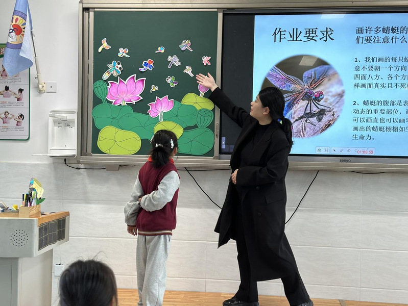 汇报课上,孙荣老师执教课程《鱼儿游游》,孙教师围绕教学目标,把握重点,突出难点,使学生在获取基础知识与技能的同时,促进了学生情感态度与价值观的温和转变,培养了学生的实践能力与创新意识,达到了预定的教学目标。许菀菀老师执教课程《蜻蜓飞飞》,许老师紧扣教学重点,循序渐进,巧妙运用创意开发学生的想象力,激发了学生的发散性思维。在评课阶段,授课老师分别进行了反思和总结,美术组全体成员也一一发表了自己的意见和建议。魏会校长在总结发言中,充分肯定了两位教师的闪光点,同时对课堂的设计及组织给出了意见和建议。