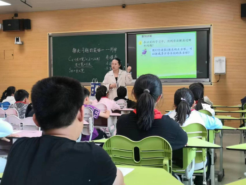 通过个人报名、教研组审核等环节,学校6位老师参加了竞赛活动。秦萌老师结合具体情境,让学生在观察、思考、讨论等探索活动中认识和掌握一一列举策略。杨艳兰老师通过让学生动手实操,在实践活动中探索周长相同时,长、宽变化与面积的关系,引导学生用数学的眼光看世界。徐洪伟老师从现实情境出发,引导学生了解有序列举优势,并举一反三列举生活中有序列举的事例。樊敏慧老师通过事例比较,引导学生了解面积和长、宽的关系。宗祥云老师注重加强方法引导,激发学生参与学习的积极性和主动性。吕子旭老师通过回顾分与合的旧知导入课堂,启发式地引导学生主动参与奥秘的探索。参与活动的老师思路清晰、语言流畅,教学设计合理,过渡自然,充分调动了学生的积极性和主动性,学生参与度高。