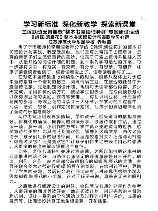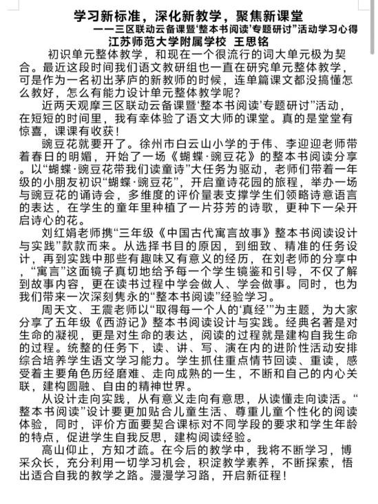 4月28日,为深入推进小学生整本书阅读工作,引导教师立足学科育人,江苏师范大学附属学校整本书阅读课题组和曹春果名师工作室全体成员集中观看了徐州市为全面落实新课程方案和课程标准,围绕“学习新标准,深化新教学,探索新课堂”研究主题举办的整本书阅读专题研讨活动。