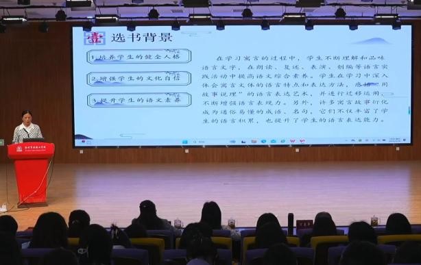 本次活动从各个年级分别安排了一节整本书阅读设计与实践的微课堂,有诗歌、有寓言、有科普、有童话,还有名著,涉及的种类多样,设计的思路别样,给我们一线老师进行整本书阅读教学提供了新的方法和路径。刘红娟老师执教的“三年级《中国古代寓言故事》整本书阅读设计与实践”从选择书目的原因,到细致精准的任务设计,再到实践中那些有趣味又有意义的经历,使得“寓言”这面镜子真切地给予每一个学生镜鉴和引导。学生们不仅了解到故事内容,更在读书过程中学会做人、学会做事。周天文、王震老师以“取得每一个人的‘真经’”为主题,为大家分享了五年级《西游记》整本书阅读设计与实践。统整的任务下,读、讲、写、演在内的进阶性活动安排综合培养了学生语文学习能力。学生抓住重点情节回读、重读,感受着主要角色历经磨难、走向成熟的一生,不断和自己的内心关联,建构圆融、自由的精神世界。